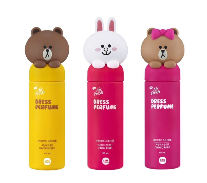 홈즈 에어후레쉬 라인프렌즈 드레스퍼퓸은 라인프렌즈의 대표 캐릭터인 브라운, 코니, 초코의 모습을 캡에 담아 △브라운 시크 △코니 핑크 △초코 베베 등 3종으로 출시했다. 각 캐릭터 이미지에 맞게 향을 차별화하고 48시간 향이 지속되는 점이 특징이다. 또한 피부 저자극 테스트를 완료했고 섬유 보호 기능이 있어 섬유의 변퇴색을 방지한다.