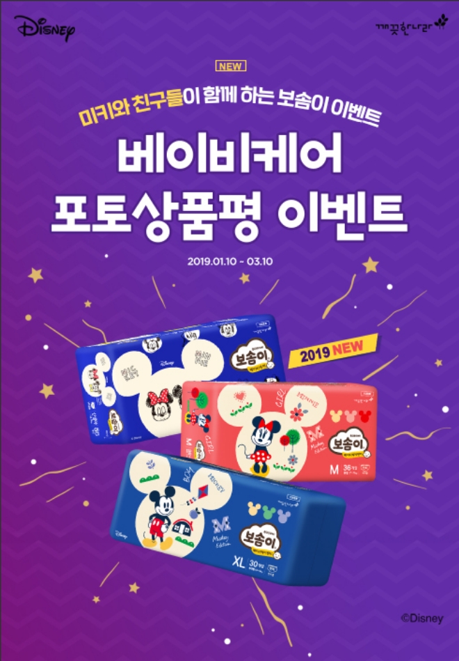 이미지 확대보기깨끗한나라는 디즈니(Disney)와 함께 만든 ‘베이비케어 밴드&팬티’ 출시 기념으로 ‘베이비케어 포토상품평 이벤트’를 오는 3월 10일까지 진행한다고 28일 밝혔다.