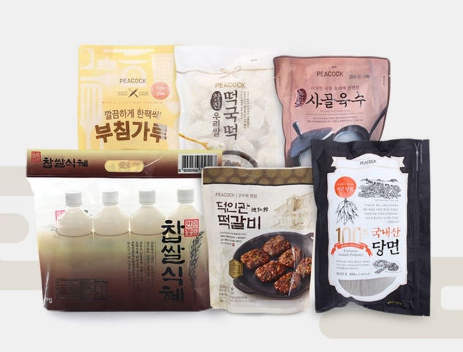 이번에 선보이는 피코크 제수용품은 떡국떡부터 사골육수, 각종 전, 떡갈비, 식혜, 당면 등 총 50종으로 차례상을 차리는 데 부족함이 없을 정도로 구색이 다양하다. 손이 많이 가는 전류와 적(산적꼬치)류를 모두 차려 낼 수 있도록 육류, 채소, 생선 등을 고루 사용한 상품 16종을 행사상품으로 선정했다.