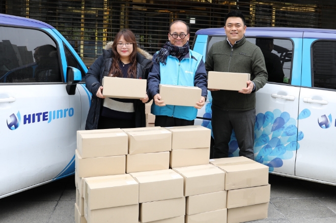 이미지 확대보기하이트진로 임직원들은 명절을 맞아 4천인분의 떡국용 떡과 만두를 14개 사회복지기관에 전달하는 정나눔 활동을 펼쳤다.