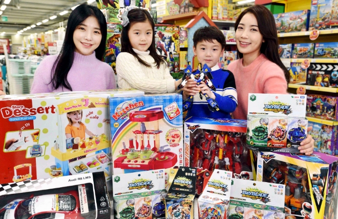 이미지 확대보기홈플러스는 설을 맞아 오는 4일부터 13일까지 다양한 완구상품을 선보이는 ‘설 맞이 우리아이 완구 선물 대전’을 마련했다고 3일 밝혔다. 5만3800~12만5100원 상당의 남아·여아완구, 유아완구, 교육완구 등이 무작위로 담겨 포장된 ‘완구 럭키박스’를 정상가 대비 최대 85% 할인된 1만9000원에 선착순 판매한다.