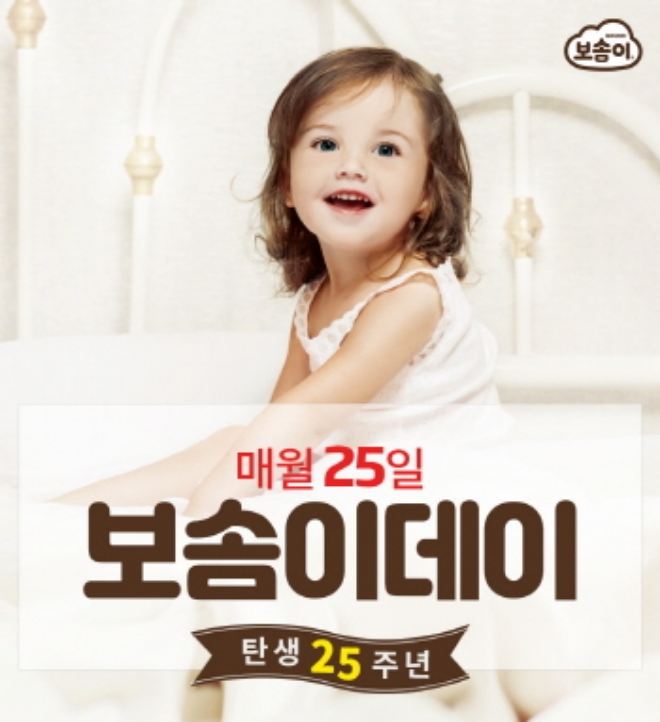 이미지 확대보기깨끗한나라 보솜이는 매월 25일 ‘보솜이 데이’ 프로모션을 진행한다고 8일 밝혔다. ‘보솜이 데이’ 프로모션은 매월 25일 보솜이몰에서 진행한다. 신생아와 소형 사이즈 기저귀로 리얼코튼·디오가닉·베이비케어(디즈니 캐릭터 협업 제품) 등의 제품을 9900원에 1팩 구매할 수 있다.