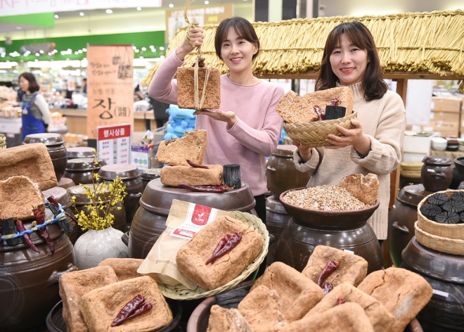 이미지 확대보기농협유통은 다음달 13일까지 우리 농산물로 만든 다양한 지역의 전통 메주를 판매한다고 19일 밝혔다. 하나로마트 양재점에서 다음달 13일까지 지평·영월·서원·남안동·자인농협의 전통 메주를 2만7100원~13만6200원 등 다양한 가격에 판매한다. 문화재항아리(33ℓ), 두레원그린건강참숯(330g) 등 장을 담글 때 필요한 필수 부자재도 선보인다