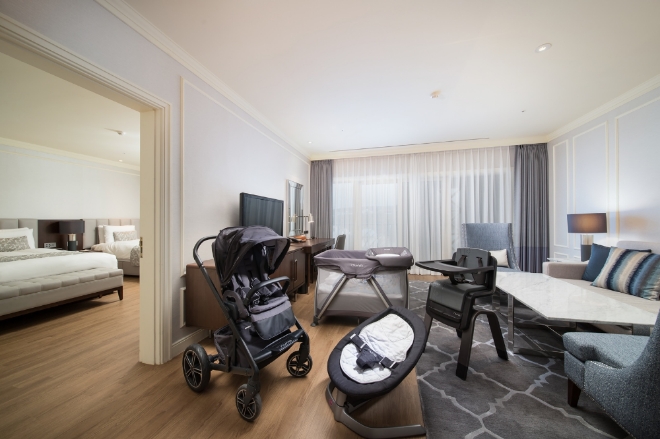 이용객에게는 뉴나의 ▲아기침대 ▲아기의자 ▲유모차 ▲카시트 ▲바운서 등 객실 내 사전 세팅 서비스를 제공한다. 패키지는 슈페리어 스위트 룸 1박, 더불어 인룸 조식 2인, 더 라운지 한라봉 주스 2잔, 쏭레브 키즈 트래블 키트 3종(샴푸·클렌저·로션), 한국후지필름의 일회용 필름 카메라 ‘퀵스냅’ 1개, 프리미엄 티 세트와 웰컴 커티시 1회 등으로 이뤄졌다.