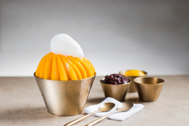 제주신라호텔의 ‘제주산 애플망고 빙수’는 제주도 현지 농장에서 완전히 익은 후 수확한 제주산 애플망고를 당일 손질해 올리기 때문에 최상의 신선도와 당도의 과즙을 자랑한다. 애플망고가 통째로 올라가 있어 2~3인이 먹어도 양이 넉넉하고, 망고 셔벗과 국내산 단팥을 함께 제공해 다양한 조합으로 즐길 수 있다.