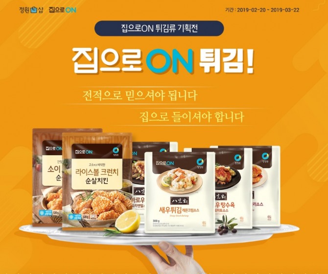 이번 기획전에서는 ▲집으로ON 순살치킨(2종) ▲집으로ON 팔선생 새우튀김(2종) ▲집으로ON 팔선생 꿔바로우(2종) 등 가정에서도 간편하게 즐길 수 있는 튀김류 제품들을 할인된 가격으로 만나볼 수 있다.
