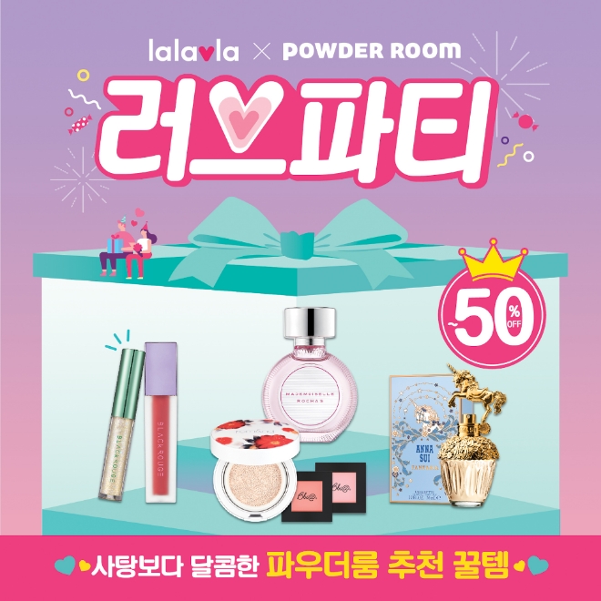 랄라블라는 ‘달콤한 러브파티’에서 파우더룸의 뷰티 인플루언서 ‘파루미언서’가 추천하는 ‘꿀인증템’ 60여개 품목과 파우더룸의 뷰티 에디터들이 추천하는 ‘꿀추천템’ 30여개 품목을 최대 50%까지 할인 판매한다. 키스미, 롬앤, 삐아, 블랙루즈, 페리페라 등의 랄라블라 베스트 뷰티 브랜드와 츄파츕스, 하리보의 푸드 아이템을 합리적인 가격에 선보인다.