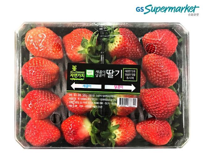 이미지 확대보기GS수퍼마켓은 2가지 품종 딸기를 한데 담아 새콤한 맛과 달콤한 맛을 동시에 즐길 수 있는 ‘새콤이달콤이’을 출시했다고 12일 밝혔다. 새콤한 맛이 좋은 ‘설향’가 달콤한 맛을 품고 있는 ‘장희’, ‘금실’ 품종 중 하나를 함께 담았다. 한눈에 두 가지 품종을 볼 수 있는 투명 용기를 사용했다. 1단 배열을 통한 눌림 방지 효과로 선도 유지에도 신경썼다.