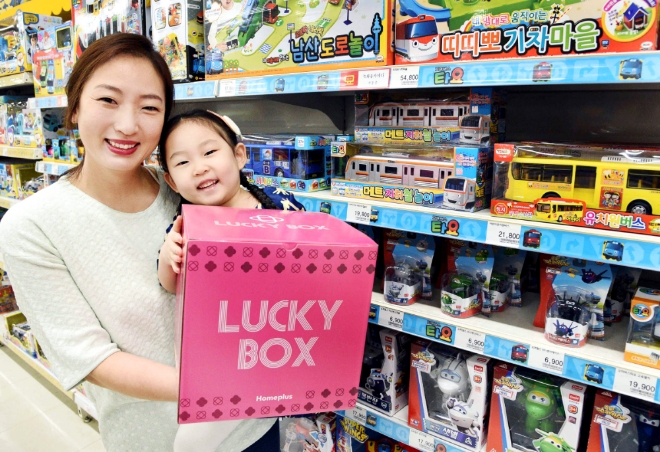 이미지 확대보기홈플러스는 창립 22주년 기념 쇼핑행사 ‘쇼핑하라 2019’ 행사의 일환으로 오는 17일까지 사흘간 오후 4시부터 완구 럭키박스를 9900원에 매일 점포별 선착순 40개씩 한정 판매한다고 15일 밝혔다. 럭키박스에는 ▲남아완구(손오공 공룡메카드, 반다이 고우) ▲여아완구(미미 플라워링 하트, 아카데미 미라클 멜로디, 손오공 글리미즈) ▲유아완구(슈퍼웡스) 등 3만8700~5만1700원 상당의 제품이 무작위로 담겨있다.