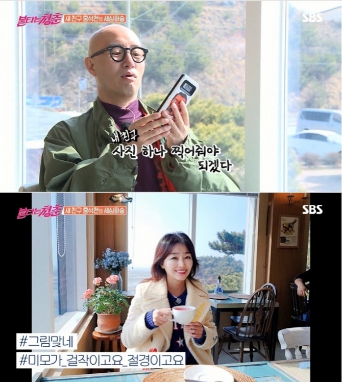 카페로 자리를 옮긴 홍석천은 "그림이네"라며 바다를 배경으로 이연수 사진을 찍어준 뒤 "뒤에 꽃이 초라해"라는 달달한 멘트를 날려 설렘을 선사했다. 뒤를 돌아본 이연수는 수줍게 웃으며 "고맙다. 친구야"라고 답했다.