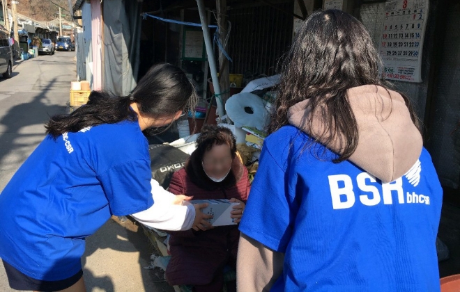이미지 확대보기bhc치킨은 ‘해바라기 봉사단’이 17일 서울시 노원구 중계동에 위치한 백사마을을 방문해 혼자 생활하시는 어르신들의 건강을 챙기는 등 봉사활동을 펼쳤다고 밝혔다. 대학생 자원봉사자로 구성된 ’해바라기 봉사단‘ 3기 2조는 백사마을을 방문해 독거 어르신들을 위해 미세먼지 마스크를 전달하고 안마와 말벗이 되어드리는 등 즐거운 시간을 가졌다.