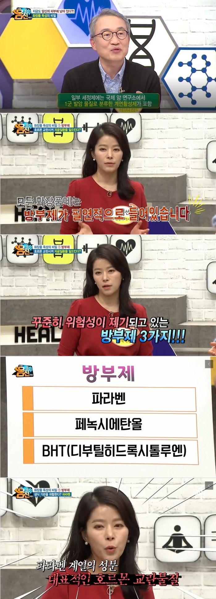 이날 방송을 통해 화장품에 사용하는 방부제가 생식기능 장애부터 비만까지 일으키는 것으로 나타나 충격을 안겼다.