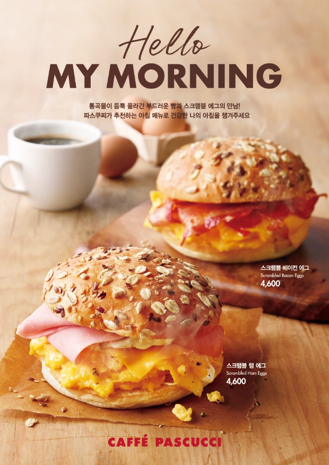 ‘스크램블 햄 에그’는 곡물이 듬뿍 올라간 빵에 스크램블에그, 체다치즈, 햄, 머스터드 소스가 어우러진 샌드위치다. ‘스크램블 베이컨에그’는 스크램블 에그와 체다치즈, 베이컨과 칠리소스가 들어가 부드러운 식감과 매콤 달콤한 맛이 특징이다. 파스쿠찌 모닝 세트는 오픈 시간(매장별로 상이)부터 오전 10시까지 운영된다. 단품으로 구매 시 4600원, 커피와 함께 세트 메뉴로 구매할 경우 6000원에 판매할 예정이다.