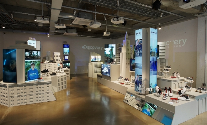김 상무는 “단순히 제품을 전시하거나 판매하는 공간이 아니라 브랜드 스토리와 이슈를 소비자들에게 전달하는 공간으로 팝업스토어를 조성했다”며 “뉴욕 타임스퀘어가 연상되는 디지털 사이니지에서는 신발을 비롯한 제품 관련 영상 등이 상영된다”고 소개했다.