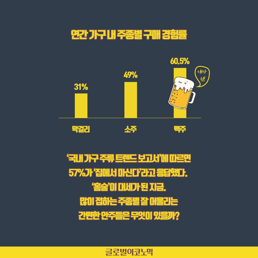 [카드뉴스] 오늘 저녁 가볍게 한잔, 홈술을 더욱 즐겁게 해줄!…주종별 초간편 안주 6