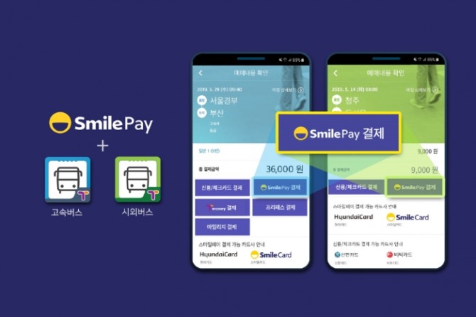 스마일페이는 모바일 앱에서 등록된 비밀번호 여섯자리나 지문 인증을 거쳐 빠르고 편리하게 고속버스와 시외버스 승차권을 예매할 수 있다.