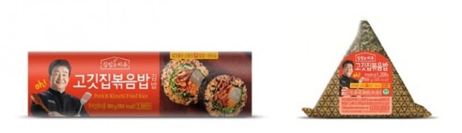 백종원 고깃집볶음밥 삼각김밥은 특제 볶음밥에 김가루를 추가해 감칠맛을 더하고 삼겹살 김치볶음을 푸짐하게 토핑했다.