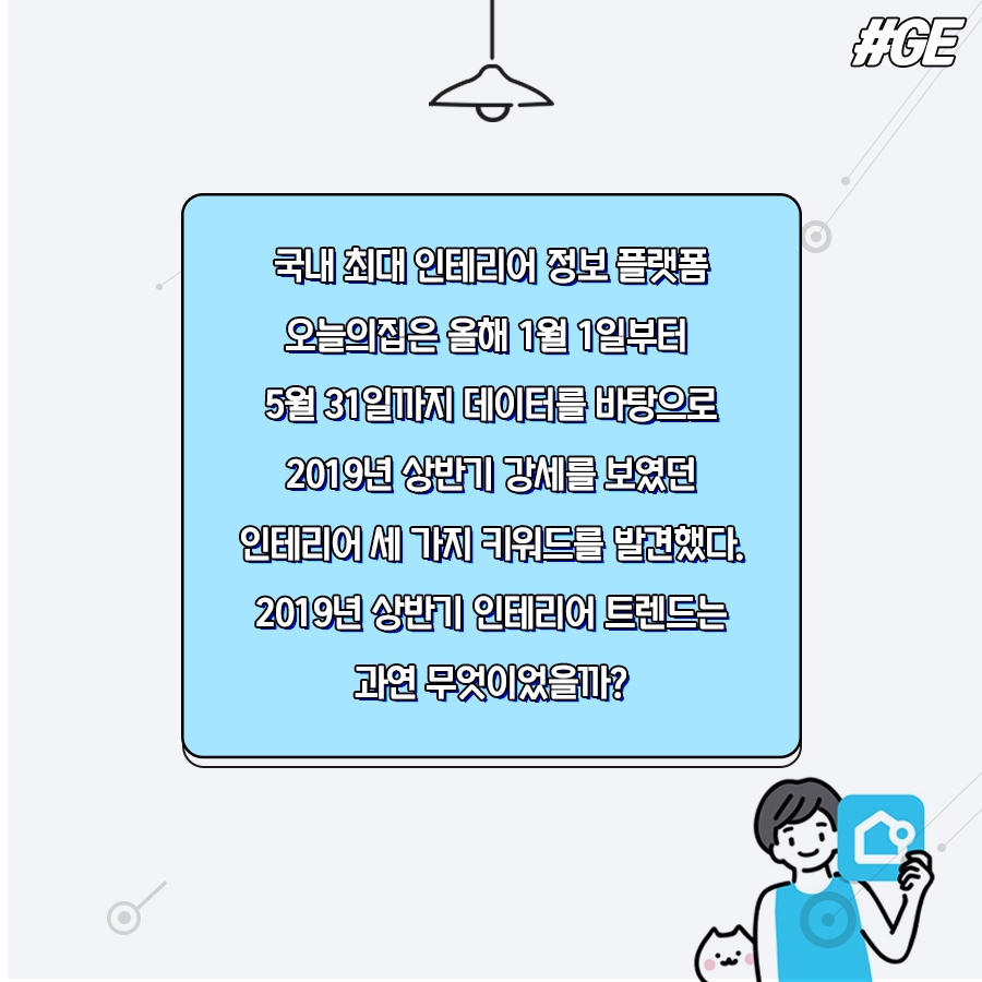 올해1월 1일부터 5월31일까지 오늘의집 서비스 내 이용자 데이터를 분석한 결과 2019년상반기 강세를 보인 인테리어 키워드로