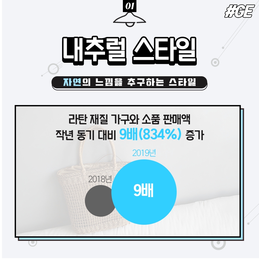 또한 라탄 재질의 가구와 소품의 판매액이작년 동기 대비 9배(834%) 증가했다.