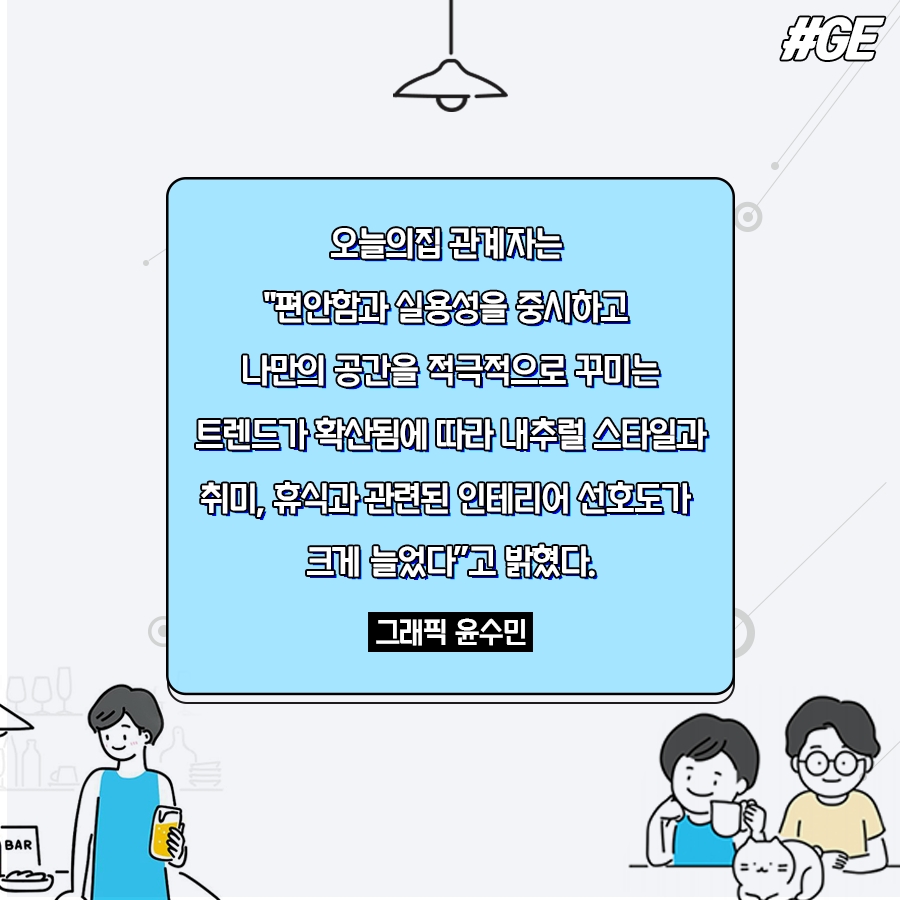 집 안에 여가 공간을 만들고소소한 행복을 즐기는 홈루덴스(Home Ludens) 트렌드도 눈에 띈다.