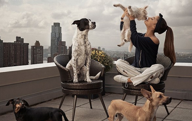 보호센터에 있는 버려진 강아지들을 7마리나 키우고 있는 아리아나 그란데. 크고 작은 여러 종류의 강아지를 키우는 것은 자신과 같은 셀럽들이 기르는 강아지 품종이 유행하는 것을 피하기 위해서라고 한다. 또 유기된 강아지들을 키우는 것과 동시에 ‘#adoptdontshop’(사지 말고 양부모가 되어주세요)라고 하는 활동에도 공헌하고 있다. 사생활에서도 비건(동물을 사용한 제품을 섭취하거나 사용하지 않는 라이프스타일)을 관철하면서 동물애호의 자세를 철저히 하고 있다고 한다.