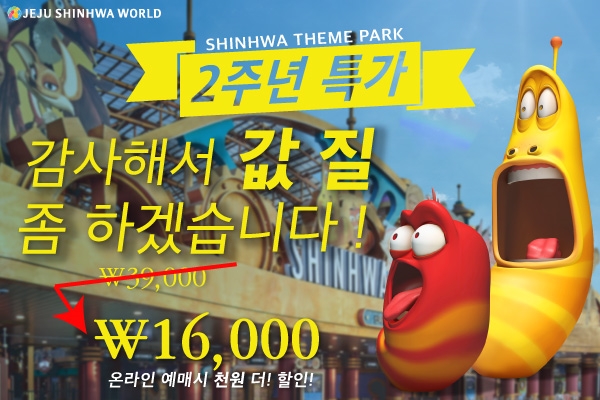 회사 측은 이번 행사를 통해 기존 입장료 3만9000원이었던 신화테마파크는 1만6000원으로 인하한다.