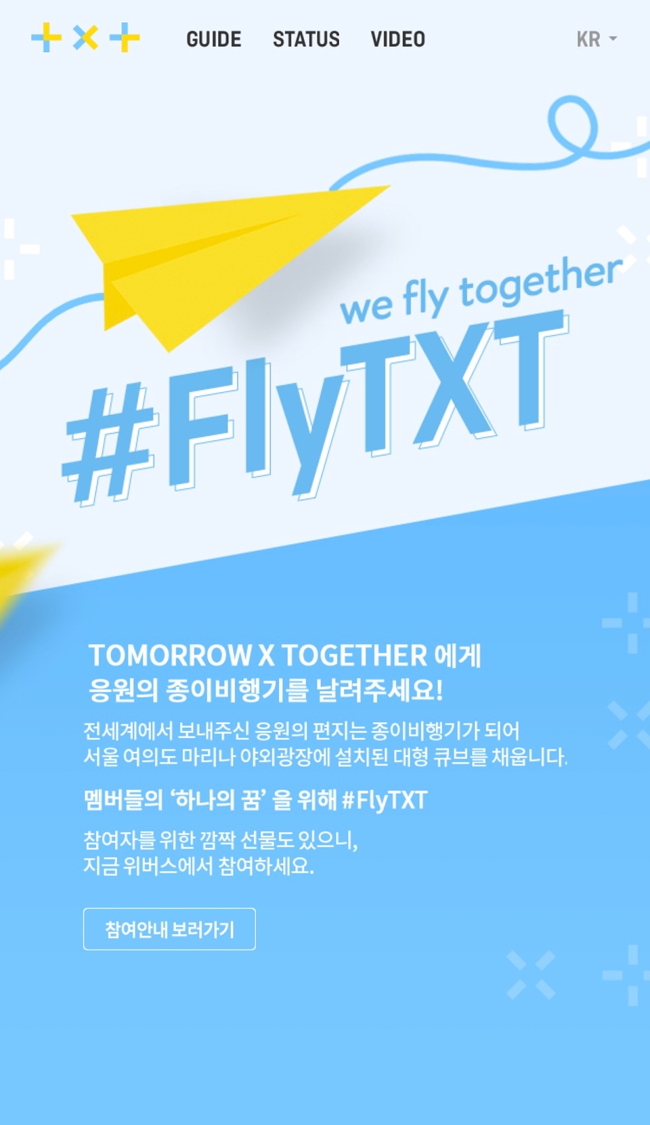 이번 캠페인은 빅히트 엔터테인먼트의 글로벌 슈퍼 루키 투모로우바이투게더(TOMORROW X TOGETHER)의 공식 팬 커뮤니티인 'TXT 위버스' 오픈을 기념하기 위해 마련됐다. 위버스 가입 후 해시태그와 함께 투모로우바이투게더를 향한 응원 편지를 작성하면 참여 가능하다.