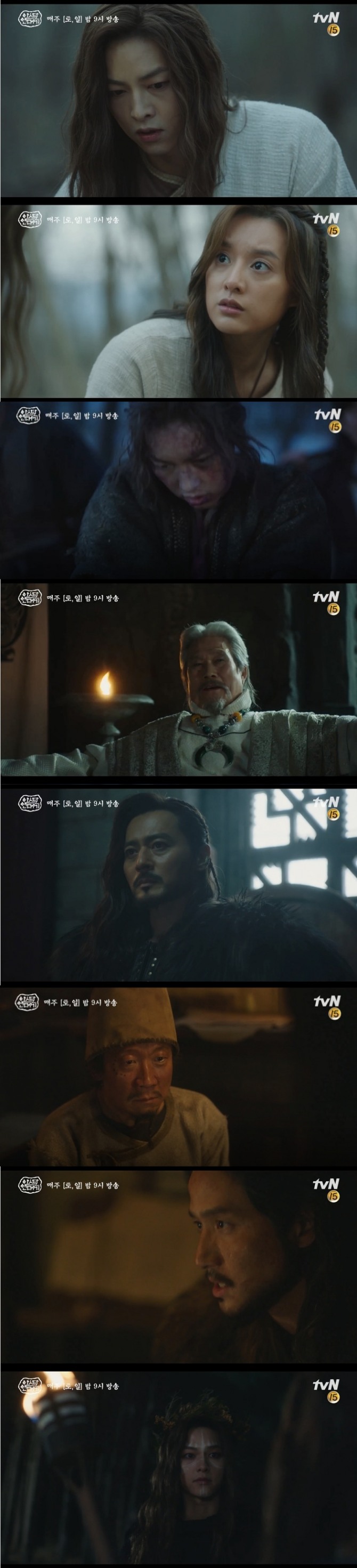 한편, 노예가 된 와한족과 함께 끌려가던 은섬(송중기 1인2역)은 쇼르자긴(김도현 분)의 모진 고문을 견디어 낸다. 은섬이 나무에 결박되자 와한족 전사였던 터대(양경원 분)가 그 곁을 맴돌아 긴장감을 자아낸다.