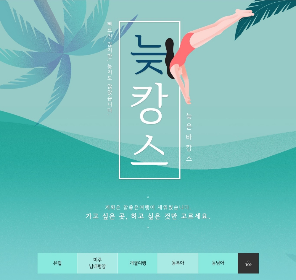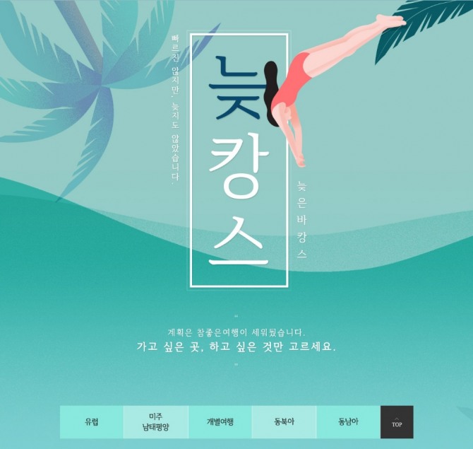 '빠르진 않지만, 늦지도 않았습니다'를 주제로 유럽과 남태평양, 동남아시아 등 다양한 지역 패키지상품을 만날 수 있다.