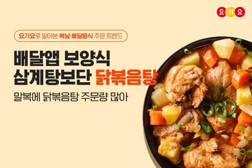 배달 앱 '요기요'를 운영하는 딜리버리히어로 코리아가 12일 복날 보양식 주문 메뉴 데이터를 분석한 결과, 가장 많이 주문이 들어온 메뉴는 닭볶음탕으로 나타났다.