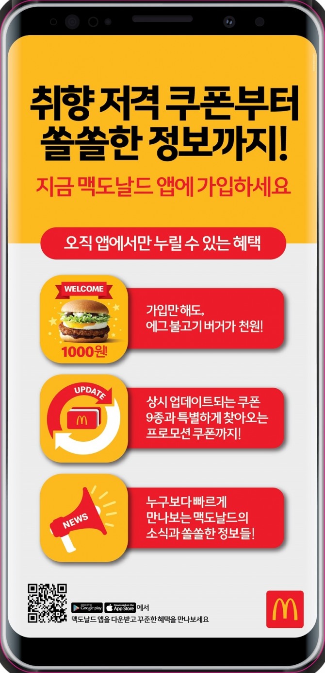 맥도날드 관계자는 “맥도날드 공식 모바일 앱에 보내주신 고객들의 성원에 감사 드린다”며 “앱을 통해서 1~3주 간격으로 새로운 쿠폰을 선보이고 오는 15일부터는 새로운 쿠폰이 제공될 예정이다”라고 말했다.