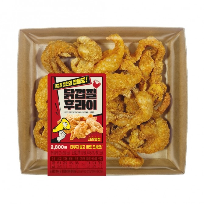 이 제품은 바삭하게 튀겨낸 닭껍질에 매콤한 시즈닝을 더했다.