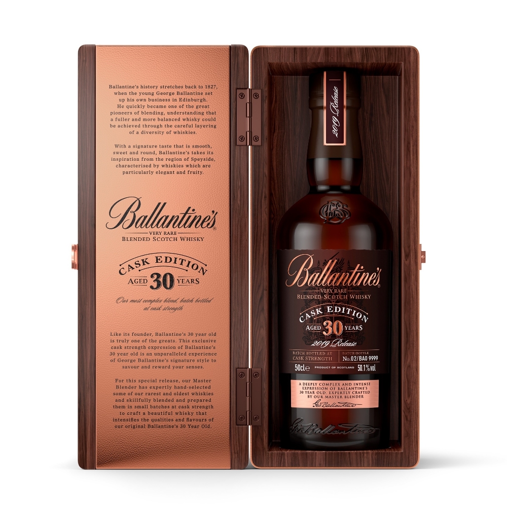 특히 오랜 기간 숙성된 위스키 원액을 그대로 병입하는 캐스크 스트렝스 방식(Cask Strength)으로 잘 익은 배의 풍미에 플로랄 향이 조화를 이뤄 풍미를 한층 더한 것이 특징이다. 또 금속과 가죽으로 장식된 다크 우드 케이스는 발렌타인 30년 캐스크 에디션만의 품격을 보여준다.