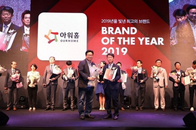 이미지 확대보기아워홈은 올해의 가정간편식, 올해의 김치 총 2개 부문에서 ‘2019 올해의 브랜드’로 이름을 올렸다. 선정된 품목은 아워홈 가정간편식과 아워홈 아삭김치로 경쟁이 치열한 간편식 시장에서 2개 부문 단일 회사 수상이라는 점이 의미가 크다고 회사 측은 설명했다.