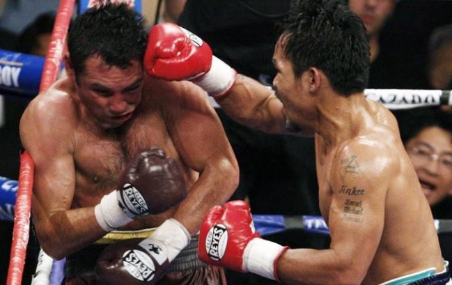 첫 회에 라이트 훅으로 다운을 뺏는 호쾌한 신고를 한 파퀴아오은 2회 이후 파워 복싱을 구사하는 서먼에 스피드로 맞불을 놓았다. 전가의 보도로 여겨지는 왼쪽 훅이 아니라 오른쪽을 축으로 잔 펀치를 톡톡 맞히며 초반을 이끌었다.