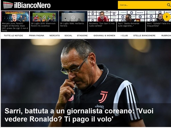 엘 비앙코네로(Ilbianconero)는 사리 감독이 한국의 기자에게 한 발언 내용과 관련, ‘사리, 한국기자에게 호날두를 보고싶은가, 내가 비행기값을 내주지!라고 조크했다’는 제목의 기사를 냈다. 이태리 기사 제목 원문은 ‘Sarri, battuta a un giornalista coreano: 'Vuoi vedere Ronaldo? Ti pago il volo’인데 이는 영어로 번역하면 ‘Sarri joke a Korean Reporter ‘Do you want to see Ronaldo? Let’s pay you for the plane!‘가 된다.