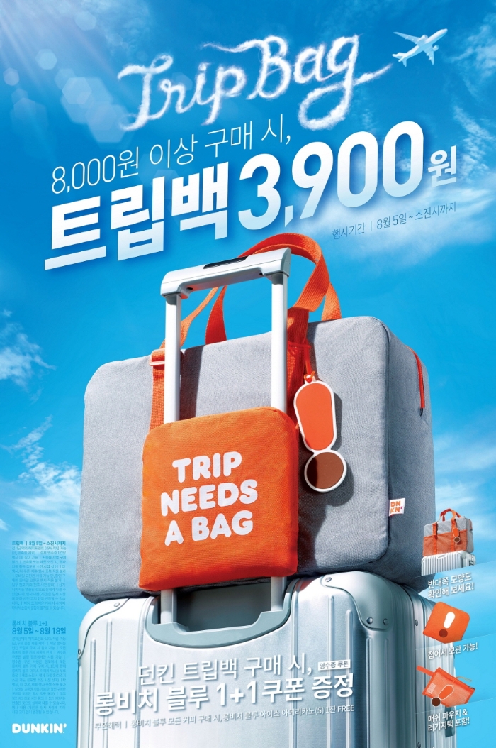 던킨도너츠 매장에서 8000원 이상 제품 구입 때 ‘트립백’을 3900원에 구매할 수 있는 행사다.