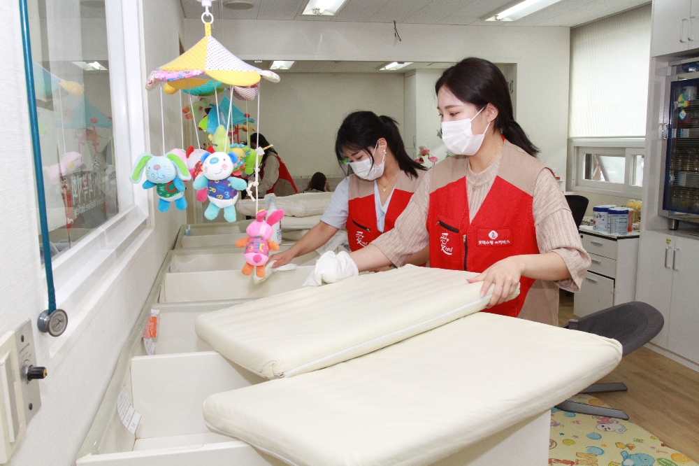 이미지 확대보기지난 7일 오후 롯데 임직원으로 구성된 롯데e커머스 샤롯데 봉사단이 동방사회복지회에서 아기방 청소 봉사활동을 하고 있다. 사진=롯데쇼핑 롯데e커머스 샤롯데 봉사단 임직원들은 지난 7일 서울 서대문구에 위치한 동방사회복지회에서 입양 대기 아동들을 위해 아기방 청소 봉사활동을 벌였다고 8일 밝혔다.