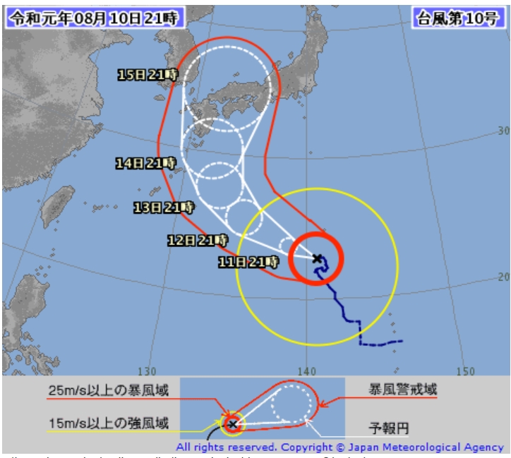 또 하나의 ‘강한 태풍’ 제10호 크로사는 이날 현재 괌 부근 해상에서 시속 5㎞의 속도로 느리게 북상 중이다. 크로사의 이동경로는 아직까지 유동적이지만, 현재로서는 일본 열도에 상륙할 가능성이 높지만 한국 접근도 배제할 수 없다. 크로사는 레끼마와 같은 강한 중형급 태풍의 세력을 유지하고 있어 우리나라에 영향을 미칠 수 있다.