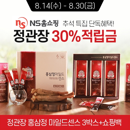 이미지 확대보기NS홈쇼핑은 오는 8월 30일 12시 40분에 방송하는 ‘정관장 홍삼정 마일드센스’는 추석선물 구성으로 3박스 (1박스당 30포, 1포당 10㎖) 기본 구성이며 소분해 선물할 수 있도록 쇼핑백 3장을 추가로 증정한다. 가격은 19만7000원으로 일시불 구매 선택하면 1만 원 할인혜택도 받을 수 있다. 미리 주문하면 배송 지연 걱정 없이 3일 이내(주말 휴일 제외)에 배송된다.