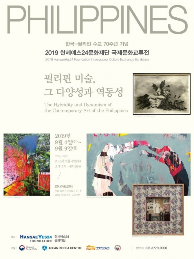 이미지 확대보기한세예스24문화재단이 오는 9월 4일부터 9일까지 서울 종로구 인사아트센터에서 2019 국제문화교류전 ‘필리핀 미술, 그 다양성과 역동성’을 개최한다고 31일 밝혔다.