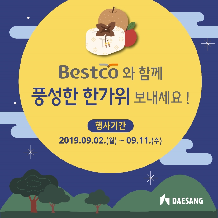 이도헌 대상㈜ 베스트코 상품개발본부장은 “민족 대명절 추석을 맞아 외식업소에서 다양한 식자재를 합리적인 가격대에 구매할 수 있도록 이벤트를 진행하게 됐다”며 “이번 행사를 통해 외식업계도 기대할 수 있는 9월로 거듭나길 바란다”라고 말했다.