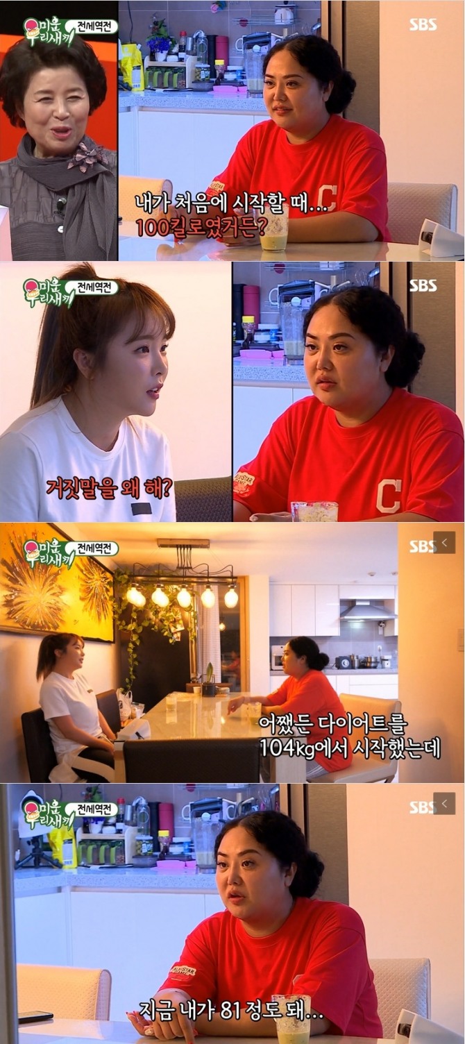 이미지 확대보기8일 방송된 SBS 관찰 예능 '미운 우리 새끼'(이하 '미우새')에서는 홍선영 씨가 세 자리 수 몸무게에서 80kg대 초반으로 약 22kg를 감량한 모습이 그려졌다.