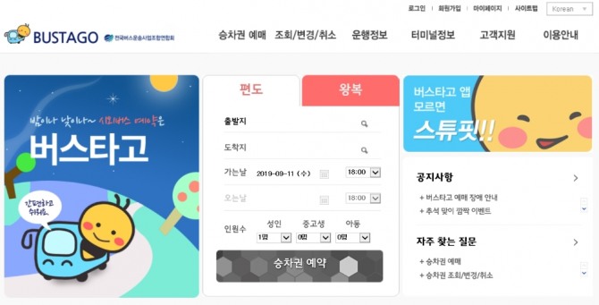 운송사업자들이 운영하는 ‘버스타고’는 아직 복구되지 않아 예매·발권을 시도하는 시민이 불편을 겪고 있다.