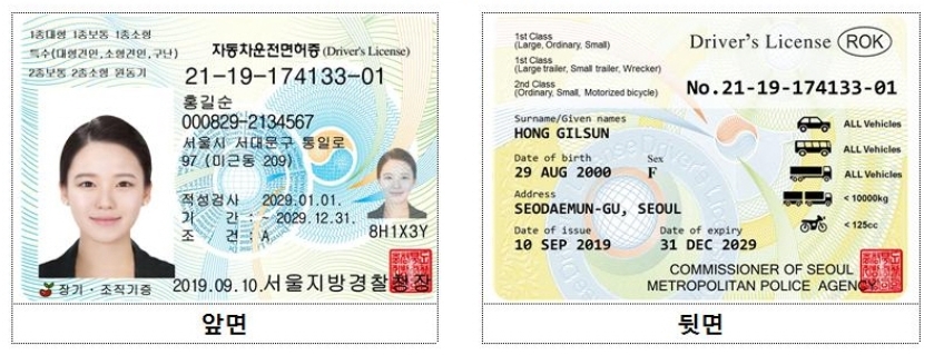 영문 운전면허증은 국내 운전면허증 뒷면에 운전면허 정보를 영문으로 표기해 발급한다.