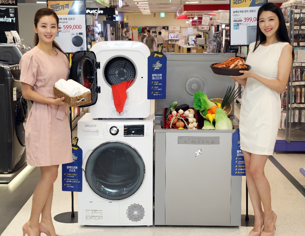 앞서 9월 5일에는 일렉트로맨 의류건조기 10㎏을 유명 브랜드 상품 대비 30%가량 저렴한 69만9000원에 선보였으며, 9월 25일까지 행사제휴 신용카드를 이용하면 59만9000원에 구매할 수 있다.