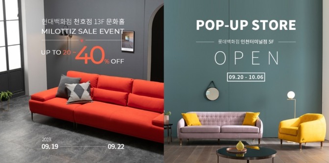 이미지 확대보기패션 가구 브랜드 ‘밀로티’가 현대백화점 천호점과 롯데백화점 인천터미널점에서 순차적으로 가을맞이 세일 행사를 벌인다.