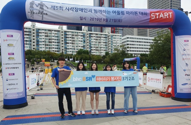 이날 봉사단원들은 이른 아침 행사장에 도착해 참가자들의 현장 접수와 배번 지급 등 출발을 위한 사전 준비 활동을 펼쳤며 시각장애인의 준비 운동도 도왔다. 이어 5㎞ 걷기 코스에 참가한 시각장애인과 서로 팔을 묶은 후 이들이 완주할 수 있도록 가이드 러너 역할을 수행했다.