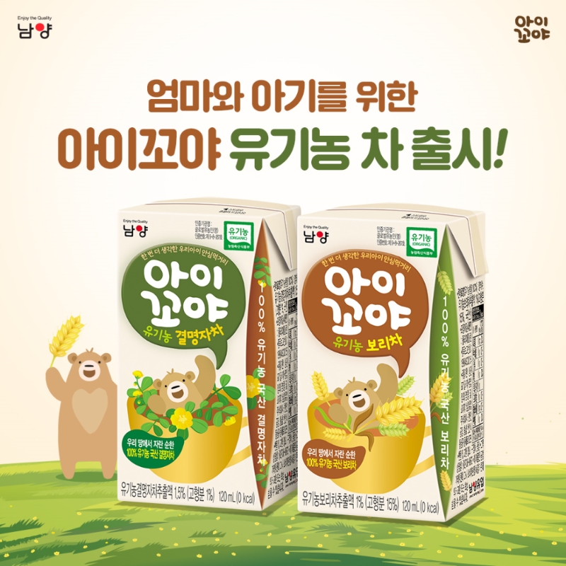 이미지 확대보기남양유업(회장 홍원식)이 우리 땅에서 자란 순한 100% 국내산 유기농 원료로 만든 베이비차(茶) ‘아이꼬야 유기농 보리차’와 ‘결명자차’ 등 2종을 선보였다.