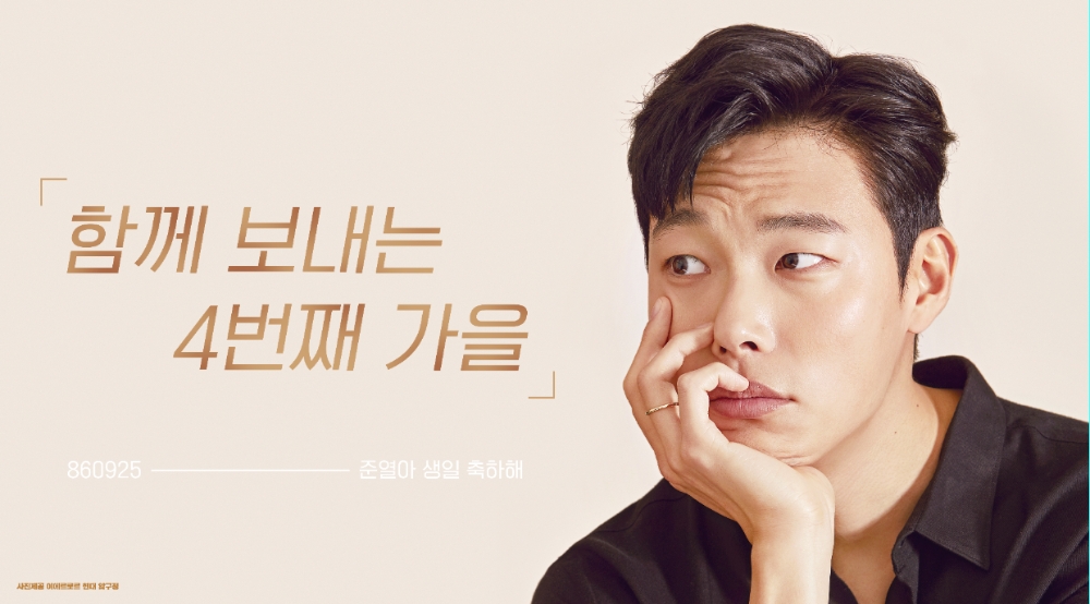 데뷔 4년차의 의미를 담은 ‘함께 보내는 네번째 가을’ 이라는 문구와 함께 류준열의 시크한도시 남자의 매력이 풍기는 사진을 게시했다. 해당 사진은 류준열이 엠베서더로 있었던 주얼리 브랜드 ‘이에르로르’ 화보의 한 장면으로 팬들은 옥외광고 사진을 보며 ‘네 번째 손가락에 낀 반지 나랑 함께 끼자’, ‘어디에도 볼 수없는 남자 주얼리 모델’,’ ‘역시 화보 속에서도 잘생김을 표현하는 류배우’ 라며류준열에 대한 팬들의 애정을 보여줬다.